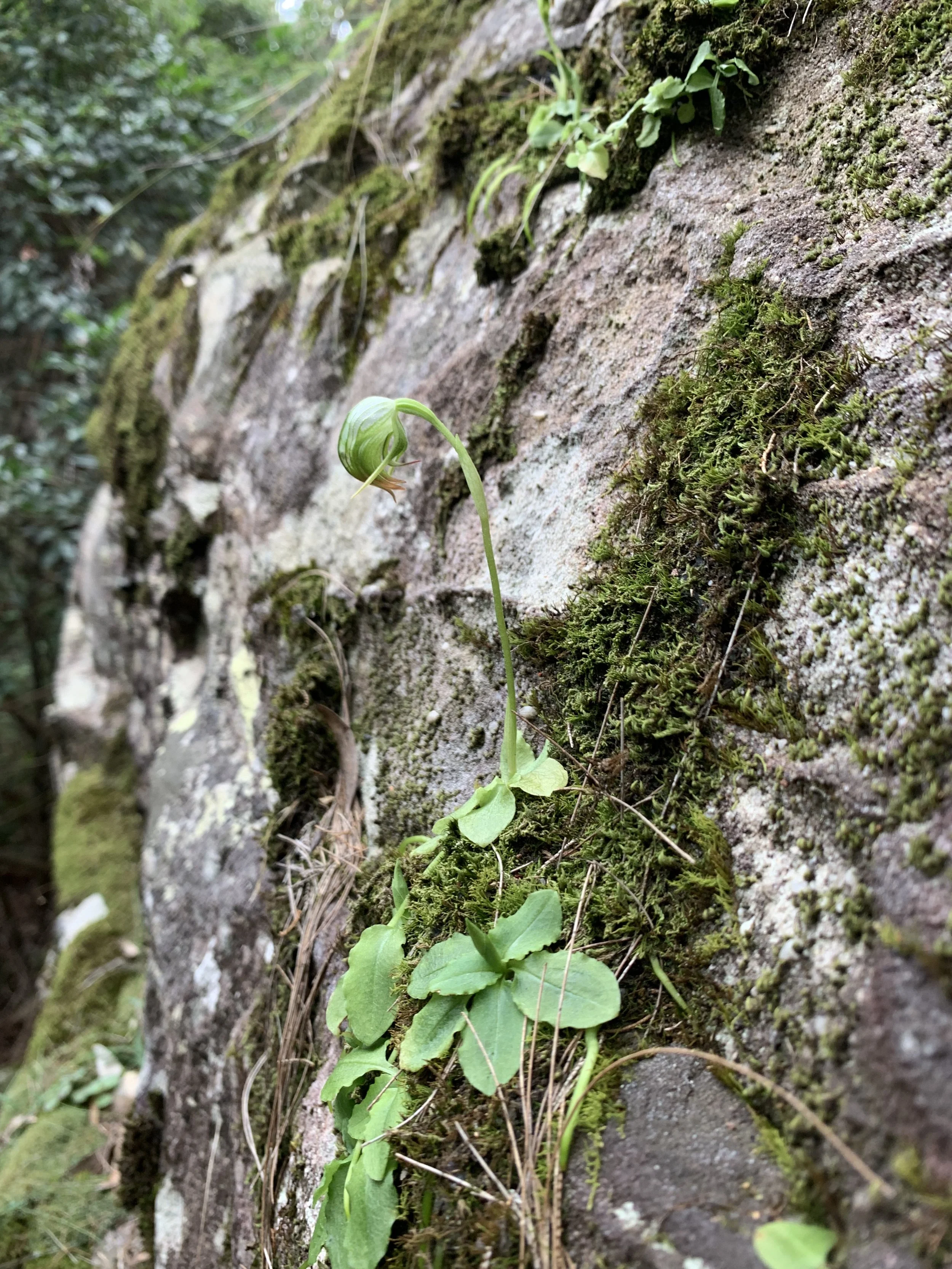 Pterostylis nutans, hanging from the moss on a sandstone boulder. Chef’s kiss!