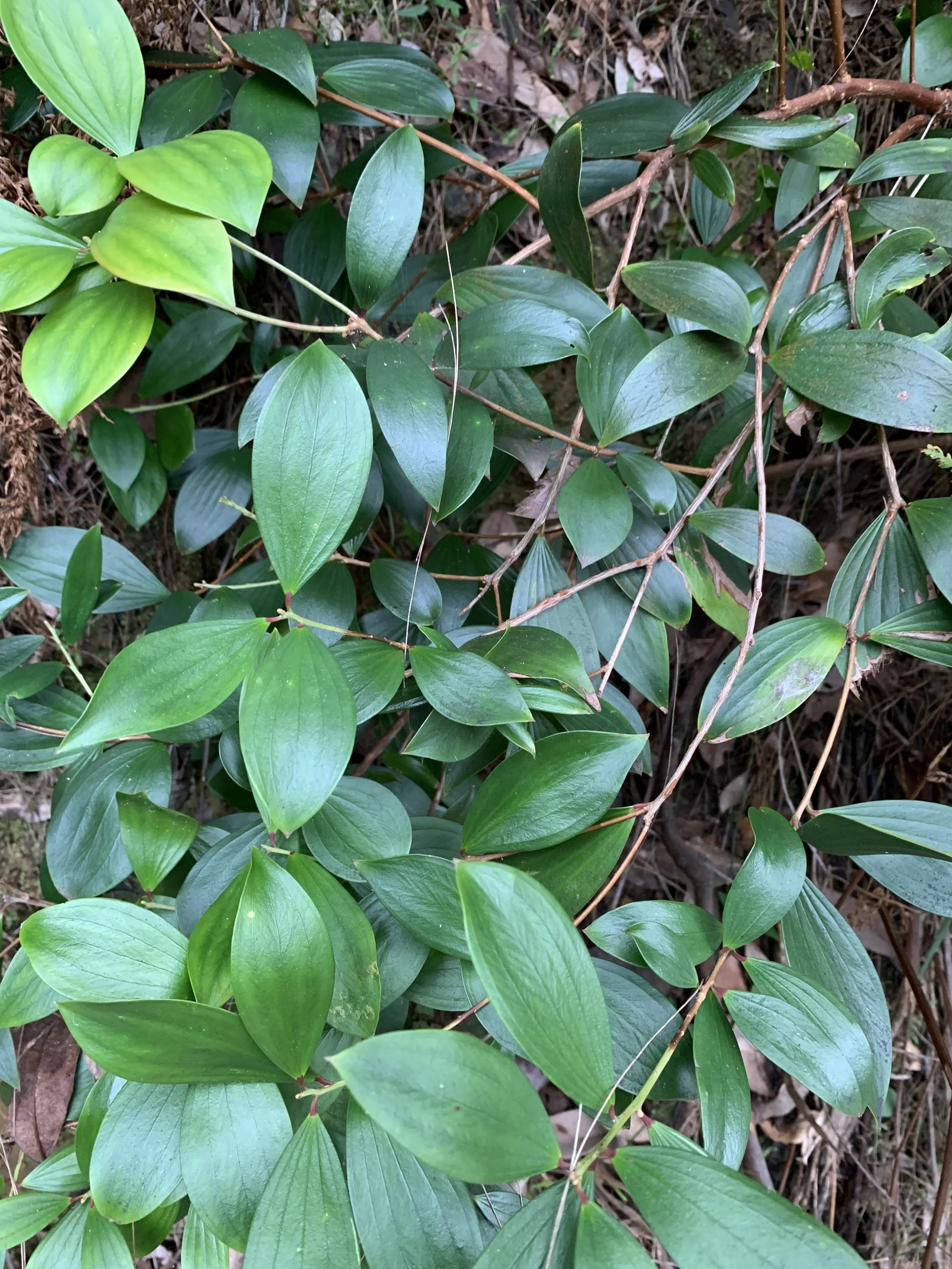 Infrequently, vines penetrated the mid-storey but never the canopy. Species such as Cissus hyperglauca (Water Vine), Cassytha glabella (Devil’s Twine), Pandorea jasminoides (Wonga Wonga), and Eustrephus latifolius (Wombat Berry) were present.
